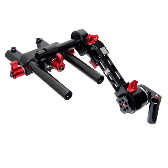 The Axis Mini for Sony FS7 and Sony FS7 II is the most adjustable ENG style mount for the Sony FS7 Monitor, giving you full 360º motion with four adjustment points. Designed to attach to the FS7 Rod Lock, it leaves plenty of room at the lens for focusing and will work with the widest of lenses. It can easily be adjusted with one hand while the rig is on your shoulder. The Axis Mini has extensive articulation for use in a variety of positions, both shoulder mounted in a Next Generation Recoil or in tripod operating position. It is very small and quick to install and remove.