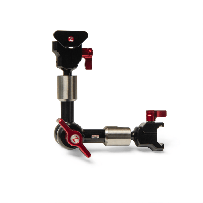 The Zamerican Z-Rail Small Arm is a 6” articulating arm that has two Z-Rail clamps on either end. Install the included Mini Z-Rail on your 1/4 20” devices- monitor, light, recorder etc and slide onto the arm. Slide the other end of the arm onto your camera rig with Z-Rail.