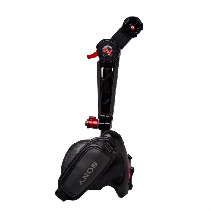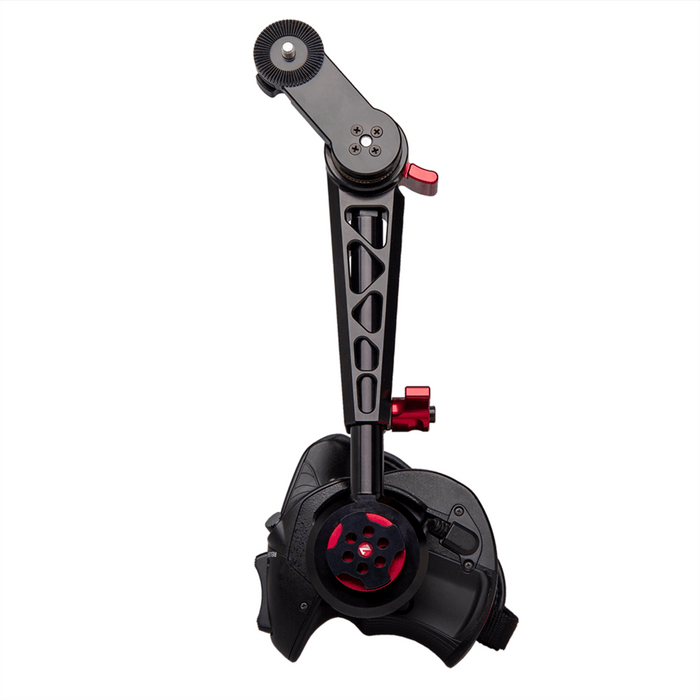 Nuestras empuñaduras de gatillo son las empuñaduras más ajustables disponibles. Permiten una rotación de 360° con una sola mano con solo presionar un gatillo. Los dos mangos giran independientemente uno del otro. Gírelos hacia abajo para obtener un agarre bajo y sólido como una roca. Levántelo para obtener una posición más estilo Aaton. O gírelos rápidamente hacia arriba para colocar la cámara en el suelo o guardarla en un estuche. O escalonarlos si eso le resulta más cómodo. La longitud de las empuñaduras también se puede ajustar aflojando una palanca roja y tirando o empujando la empuñadura hacia adentro.