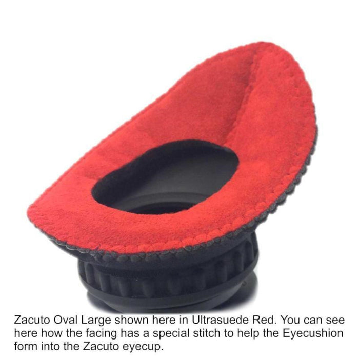 Bluestar diseñó específicamente este Eyecushion para adaptarse a la línea Zacuto de Z-Finders y EVF. Nuestro diseño único se adapta perfectamente al hermoso ocular Zacuto. Básicamente, nuestro nuevo Zacuto Oval Large es igual que nuestro Oval estándar. Grande, pero tiene un contorno en la parte delantera y trasera para seguir la concavidad del ocular Zacuto. Este diseño "3D" no "tirará" ni "apretará" el ocular Zacuto. La solapa original de Zacuto Light se puede utilizar con este Eyecushion.