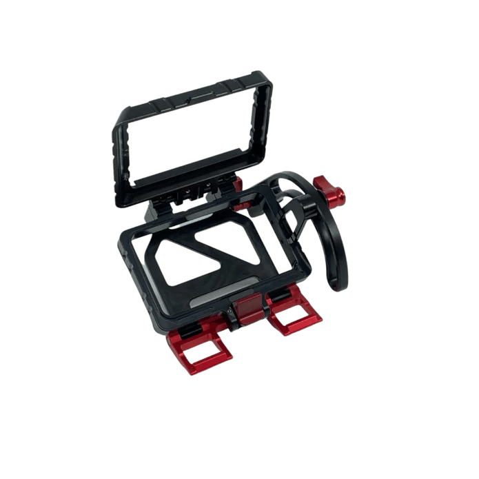 The Z-Finder can be used independently of any camera cage. It securely mounts to the camera strap hook, which is built into the camera's body, providing a rock solid mounting point. Attaching and removing the Z-Finder is as easy as turning a lever and sliding the Z-Finder on or off the LCD. It features a foam padded sleeve that won't damage or scratch your camera's LCD. The unique design of the Z-Finder allows it to have a 135 degree range of motion when tilting up or down, letting you comfortably view the LCD when shooting in low mode, raised up over your head, and everything in between.
