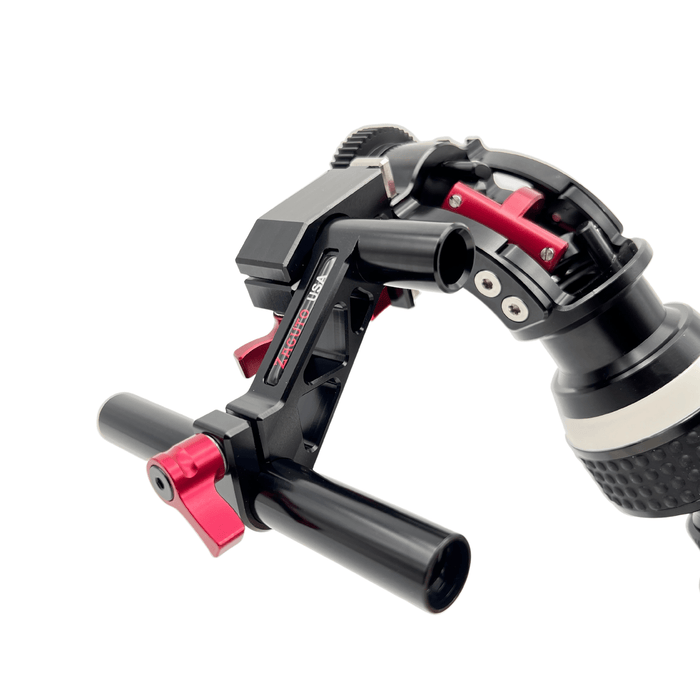 The Z-Drive Height Adjuster gives you more range on positioning our Z-Drive Follow Focus, accommodating for different lens barrel sizes and adjusting for the change in lens position when used with our VCT Rotator.