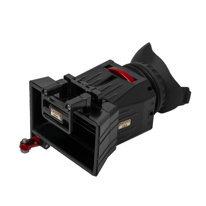 The Z-Finder attaches by using a foam padded sleeve mounting frame that slides over the LCD screen of the LCD monitor. The Z-Finder uses the Canon LA-V2 LCD Attachment Unit for cameras and the included Zacuto Mount to mount the Z-Finder to your camera. This option is available out of the box. If you’d like to use a more robust, flexible mount, you can use our Axis Micro or Mini, EVF mounts with a custom rosette piece to mount it.