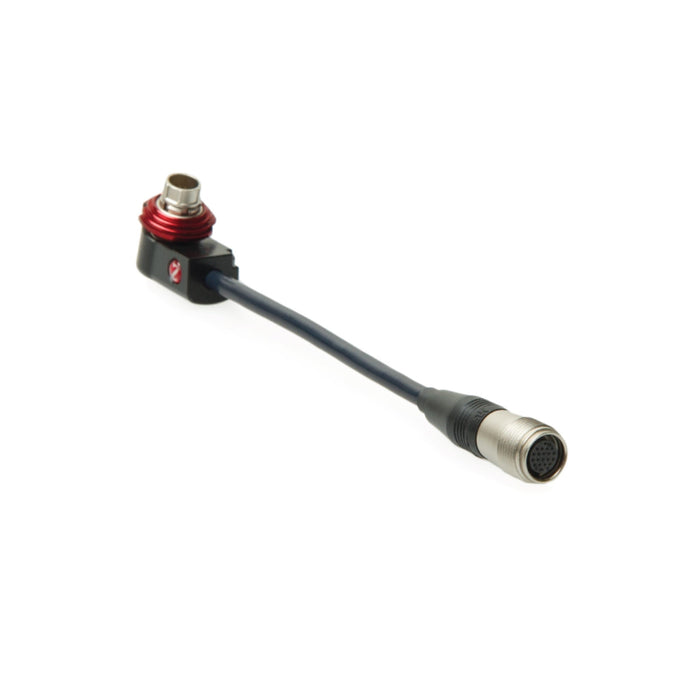 El cable de extensión de ángulo recto le permite extender el cable de reubicación de la empuñadura de lente Canon 18-80 o 70-200 6” adicionales desde la lente. El ángulo recto del cable alivia la presión sobre el puerto y evita que el cable interfiera con las placas base o el suelo.